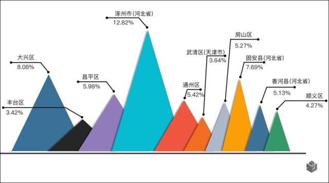从图2、图3可看出,北京90后最关注的区域主要分布在五环至六环之间,以及大七环的环京卫星城 。