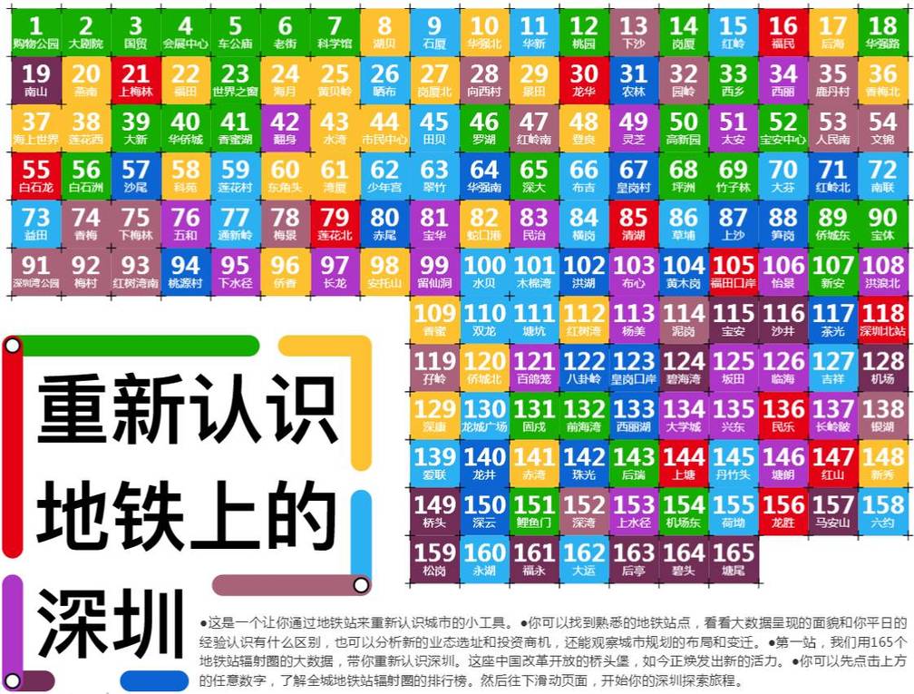 以下数据来源于:DT财经最新发布的《2017深圳城市大数据活跃报告》,报告通过汇聚深圳165个地铁站辐射圈(地铁站1公里范围内)的大数据,从商务、居住、休闲娱乐、商业、交通友好度等方面对深圳进行了深入分析。