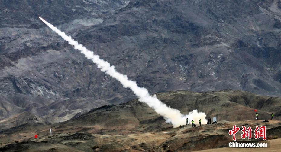 各参赛队在9.5公里的闭合赛道上,在5个指定射击地段使用导弹分别对模拟空中目标、模拟直升机靶标、地面移动装甲目标等进行迎攻射击、尾追射击等,主要检验导弹分队快速机动和精确射击能力。王小军摄