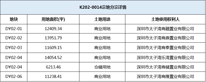 据了解,7月29日公示分宗的DY03-01为太子湾片区的首块教育用地。2016年5月21日,深圳规土委也已在官网发布K202-0014宗地的分宗情况。