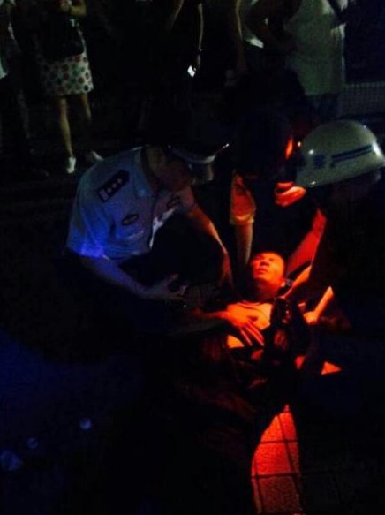 在此期间,反恐分队队员龙新旺两次快速从楼梯奔跑上楼疏散人员,由于体力严重透支,在他第二次跑下楼向领导报告现场没有人员时,龙新旺忽然晕倒在救援现场,负责领导立即组织现场队员将龙新旺送上120救护车前往附近医院救治。