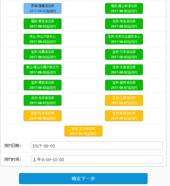7.选择预约地点和时间后,点击“确定下一步”。