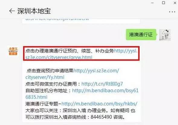 1.“深圳本地宝”微信后台同样可以预约办理,只要发送“港澳通行证”或“护照”或“台湾通行证”或“出入境”都可以办理。