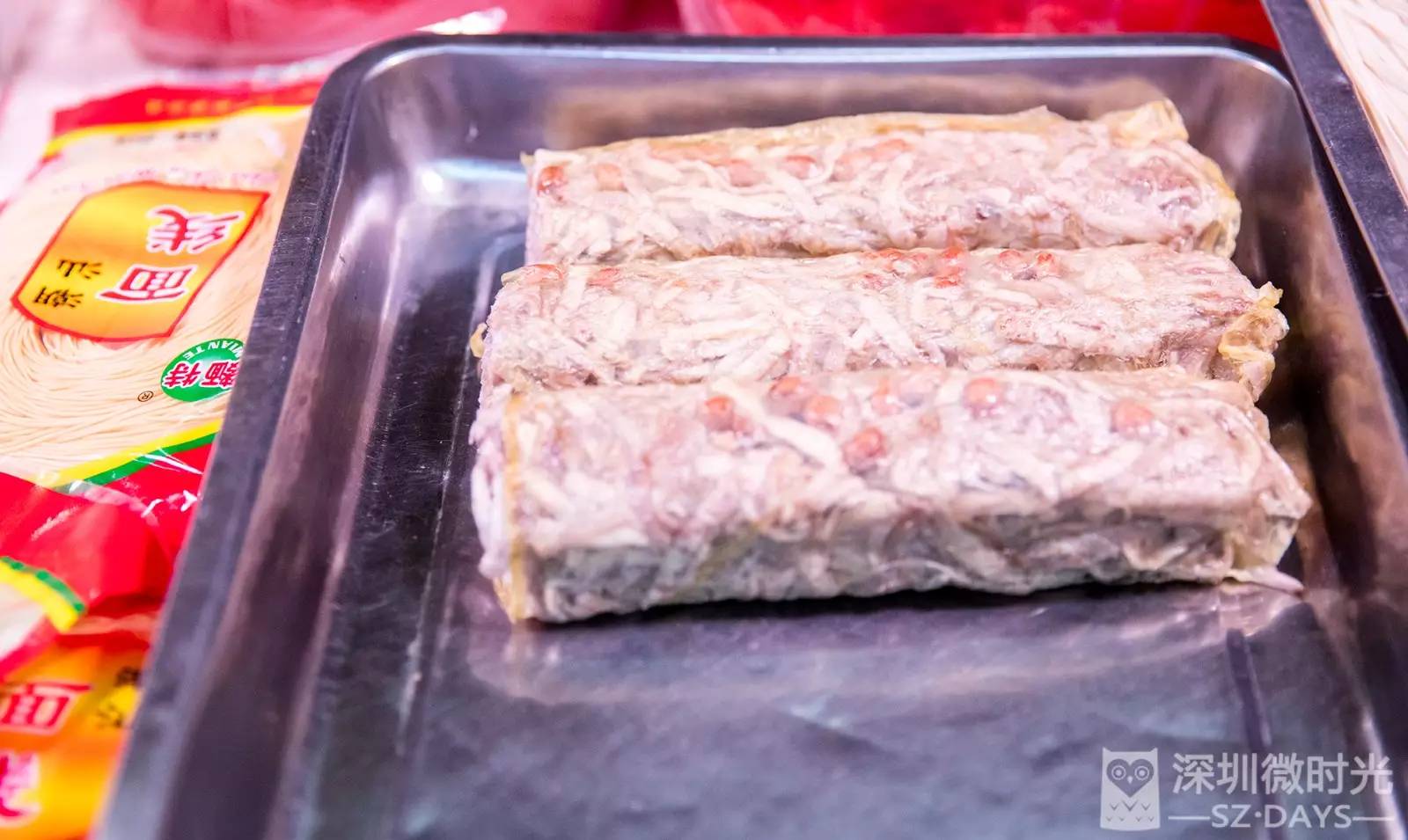猪肠糯米卷,它的外皮是腐竹,内馅儿是香芋和花生,咸味。