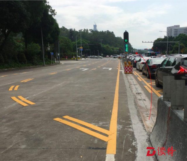 为缓解新洲红荔路口晚高峰西往北方向交通压力,交警部门于4月10日在新洲红荔路口西进口采取双排借道左转新型交通组织措施,红荔路左转进新洲路可借用对向的两条车道。