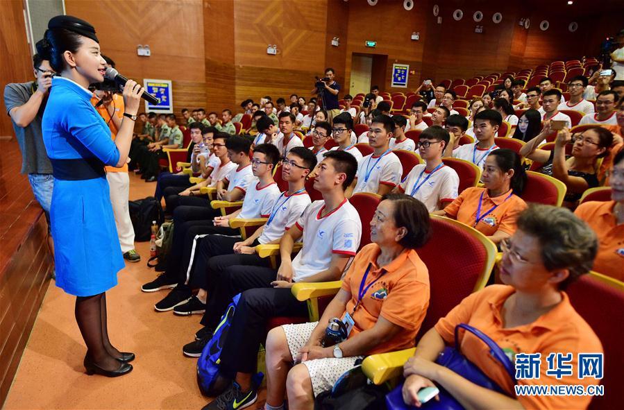 8月6日,厦门会晤志愿者礼仪培训指定单位厦航礼仪教员(左一)讲述金砖五国文化及各国礼仪。当日,1000多名厦门志愿者分别在厦门大学明培体育馆和鼓浪屿现场集中学习国际礼宾礼仪。根据厦门会晤志愿服务总体方案的计划安排,从7月1日起至8月中旬,2000多名志愿者统一接受了专业培训。新华社记者魏培全摄