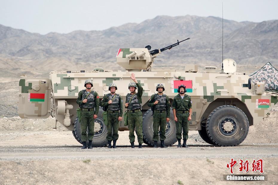 白俄罗斯参赛队选手在起点处向观众挥手。