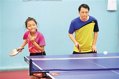 在这次对阵中,除了精彩的比赛吸睛以外,最小选手王诗妍的表现让所有人点赞。在龙华经发队的王诗妍是本次比赛年龄最小的选手,只有10岁,混双比赛中除了她这个“小不点”,其他三位选手都是大人,但她在场上一点都不怯场。在场外远远观赛的诗妍妈妈告诉记者,诗妍从6岁开始参加比赛,之前参加的赛事一般是青少年间的比赛,每盘比赛采用三局两胜,现在的赛制对于诗妍而言,战线有点长,加上力量悬殊和技术不成熟,很多球比如旋转球处理的不太好,但取得这样的成绩已经很不错了。场外观众更是对这个“小不点”称赞有加,称她“小身材大力量,打球很稳,丝毫不逊色于大人”。比赛结束后,王诗妍与队友和对方选手分别击掌,轻松走出赛场。“面对大人选手,虽然有点压力,但打起球来还是蛮轻松的。”王诗妍说,“今天主要是跟着教练来锻炼一下自己的球技,经过这场混双比赛,感觉能学到不少东西。”