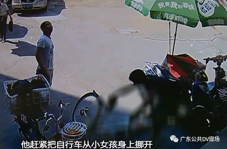 前天下午三点半左右,事发地点在深圳宝安区西格路,小女孩坠落在叶先生店铺的门前,叶先生看到她被一辆自行车压着,他赶紧把自行车从小女孩身上挪开。