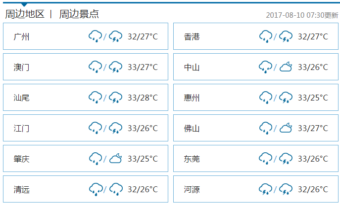 【深圳市降雨提示】【东部部分地区有明显降雨】东部部分地区未来5个小时将有明显降雨,累积雨量可能达到20毫米以上,伴有雷电,阵风6-7级。深圳市气象台2017年08月10日07时15分发布