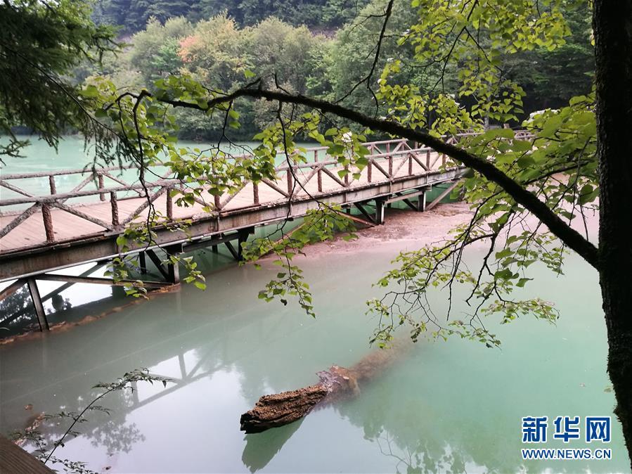 这是8月9日拍摄的九寨沟景区里通往五花海景点的道路情况。