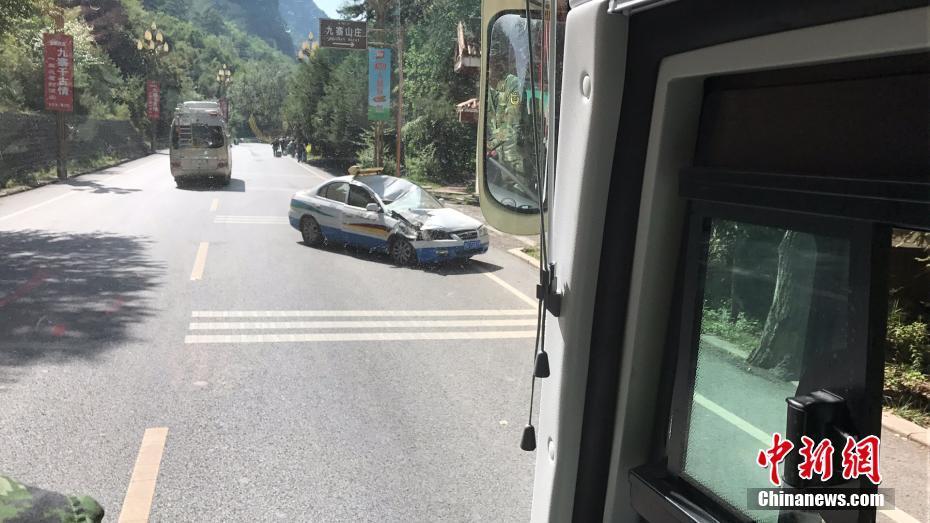 受损的汽车停在路上。 中新网记者 杨勇 摄