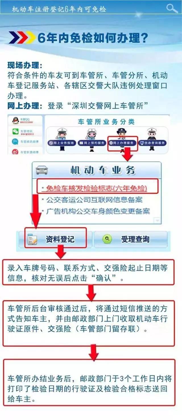 不要跑到检测站去哦,检测站将不再办理符合6年内免检车辆的检验业务。