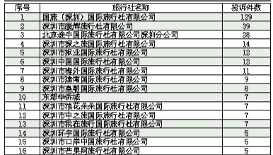 2017年深圳市被投诉旅游企业排名说明:本表数据来源于12301、12345系统及来信、来访等途径,由市文体旅游局及各区(新区)旅游主管部门汇总统计。其中,经核实,部分被投诉旅游企业系被人假冒,已有旅行社通过司法诉讼等途径维权。