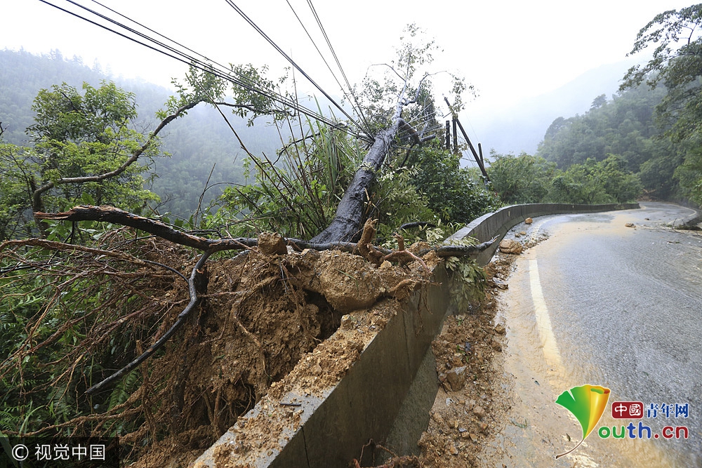 桂林灵川县的文兰公路沿线风景优美,吸引了很多游客前来避暑游玩。13日的强降雨过后,文兰公路杨柳界处形成了一个长约20多米、宽10多米、深约8米的巨大断层,再加上大大小小的几十处塌方,使得文兰公路全线中断,众多人员滞留当地。