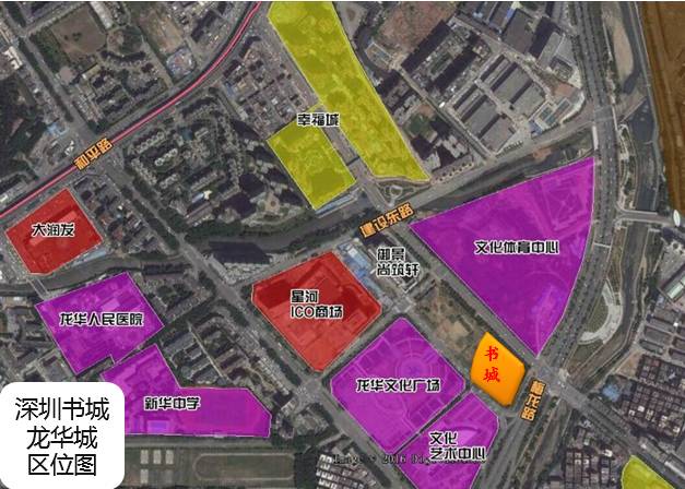深圳书城龙华城位于龙华区龙华街道,附近有龙华文化广场、文化艺术中心、大型商场,也有规划中的文化体育中心。