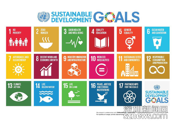 联合国2030年可持续发展议程涵盖的17个可持续发展目标。