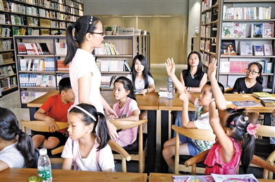 当天下午,阅读分享会吸引了30多个家庭参与,他们有的陪着孩子早早来到阅读中心里看书。在阅读分享活动正式开始前,贺娇华老师按照观澜街道相关部门的安排,先和大家一起温习文明城市创建和社会主义核心价值观的内容。贺老师问道:“小朋友们,你们知道深圳现在全民都在参与一件什么大事情吗?”“创建第五届全国文明城市!”孩子们大声地说出了答案。“那你们能背诵社会主义核心价值观的内容吗?”孩子们纷纷举手,踊跃走到台前,流利地进行了背诵,得到了贺老师的高度赞扬。