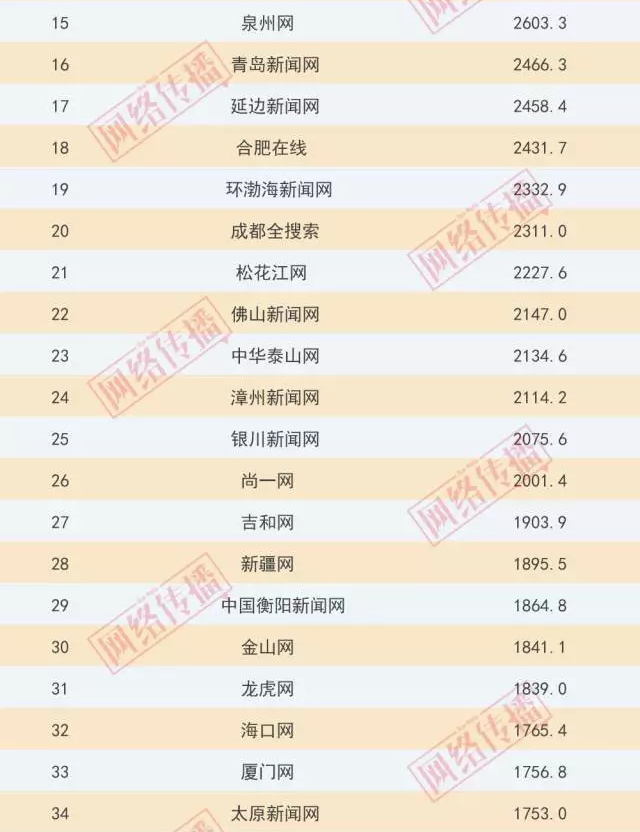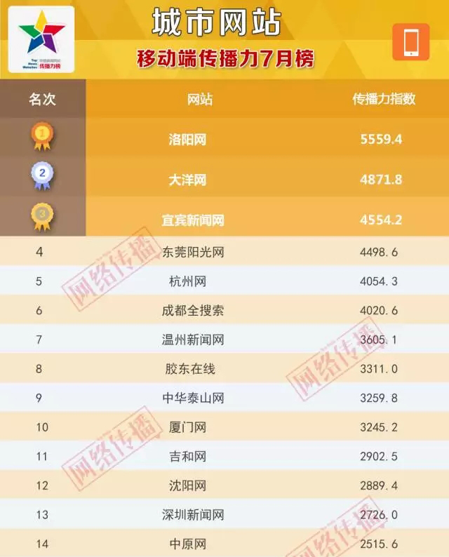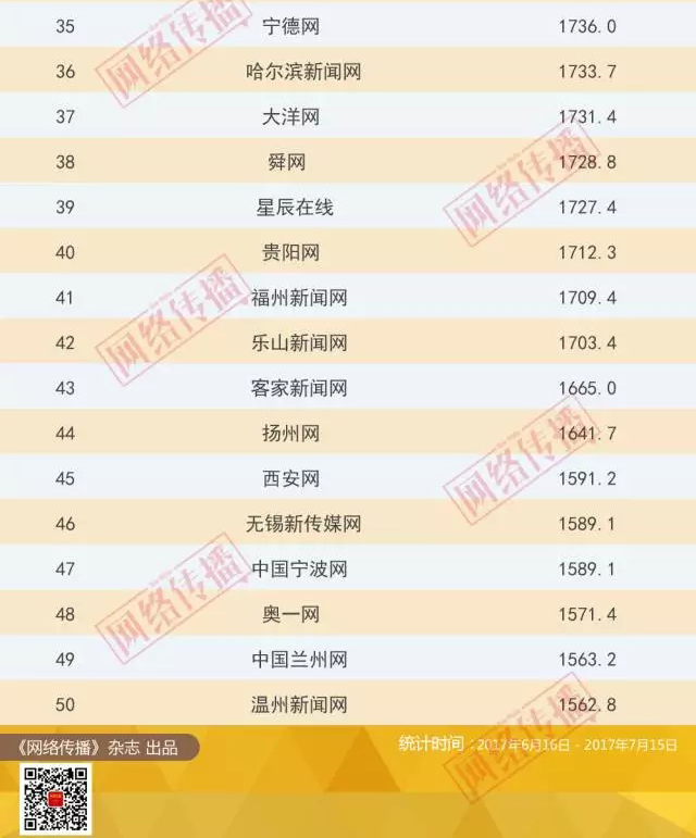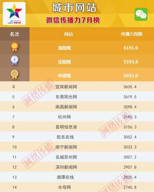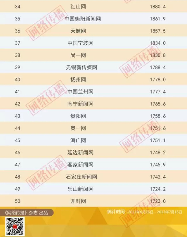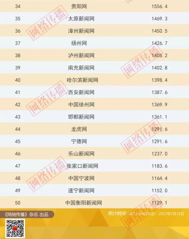 城市网站综合传播力2017年7月榜 深圳新闻网位列第一