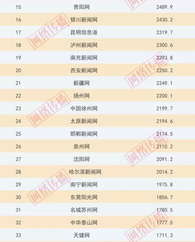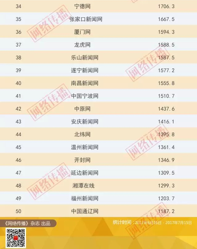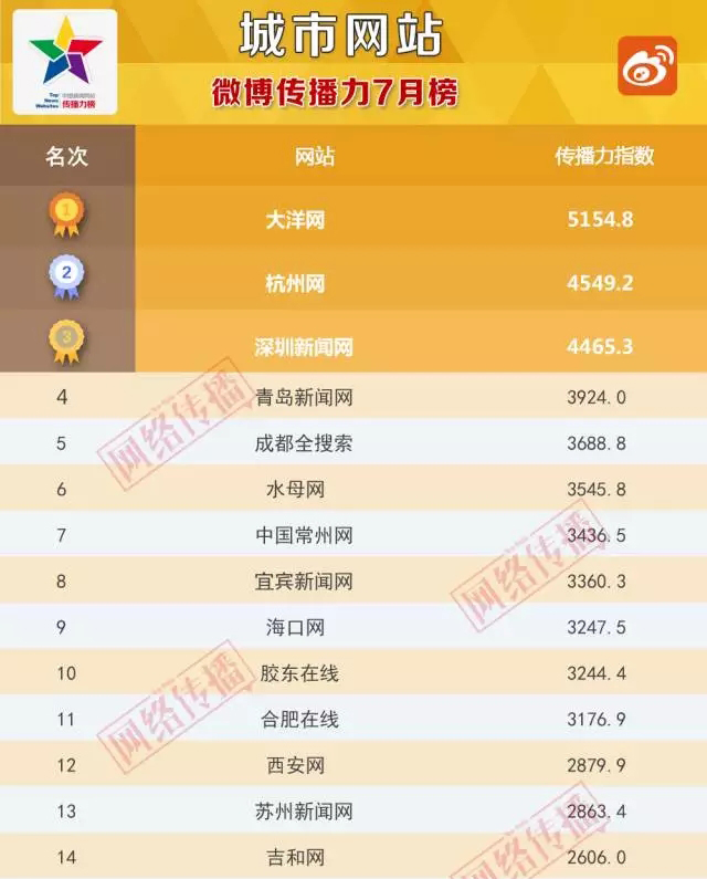 城市网站综合传播力2017年7月榜 深圳新闻网位列第一
