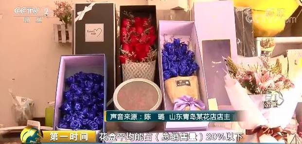某花店店主陈璐表示:“在三年前,花盒平均能占20%以下,但是截至今年,已经超过70%到80%。”