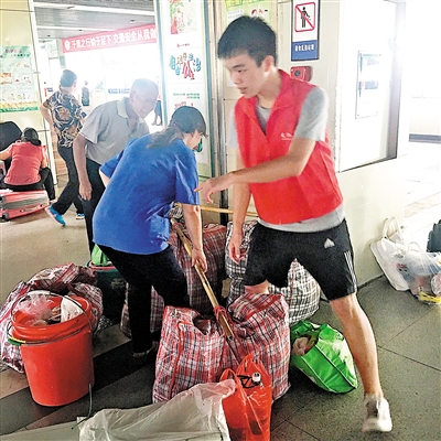 沈喜耀在龙华汽车站开展志愿服务。(受访者供图)