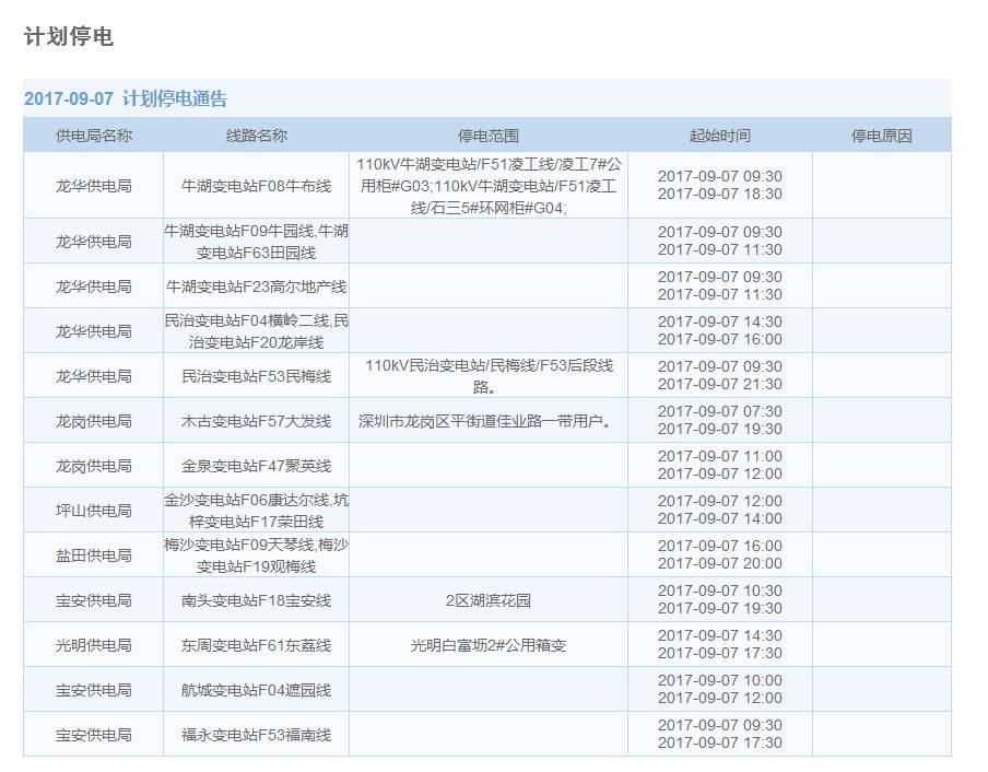 为了安全起见,深圳部分区域将逐步进行停电安全检查。