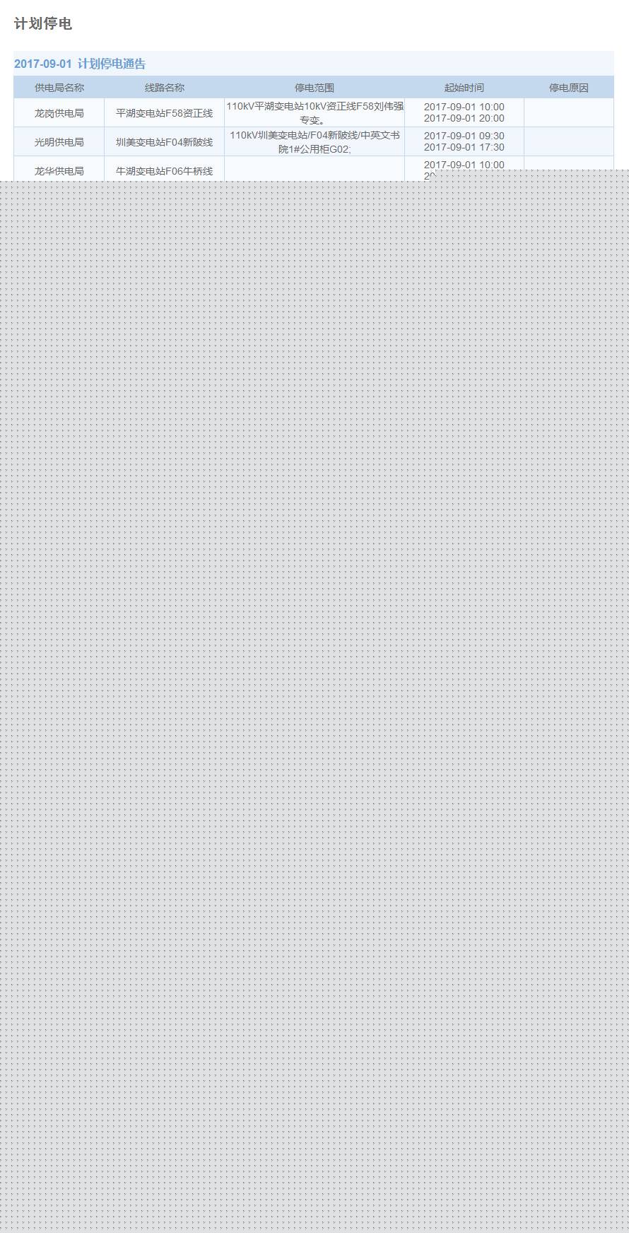 9月1日计划停电区域