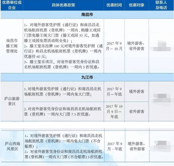 全省5A级旅游景区、部分重点4A级旅游景区对境外游客凭国外护照(通行证)和南昌昌北机场航班机票(登机牌)一周内免大门票;