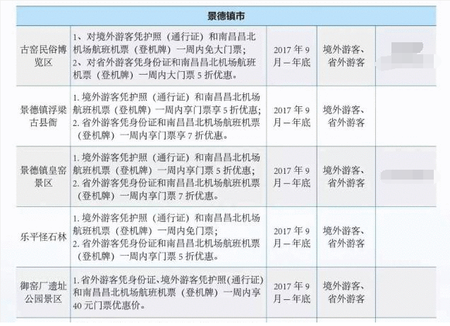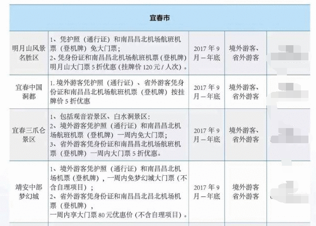 全省5A级旅游景区、部分重点4A级旅游景区对境外游客凭国外护照(通行证)和南昌昌北机场航班机票(登机牌)一周内免大门票;