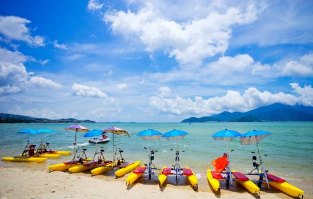 这里不仅有蔚蓝的大海,明媚的蓝天,还有丰富的海上运动,帆船、摩托艇、快艇、滑水等。