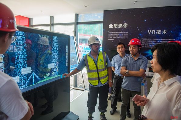 建设方用多种科技手段向各界来宾介绍项目建设情况。