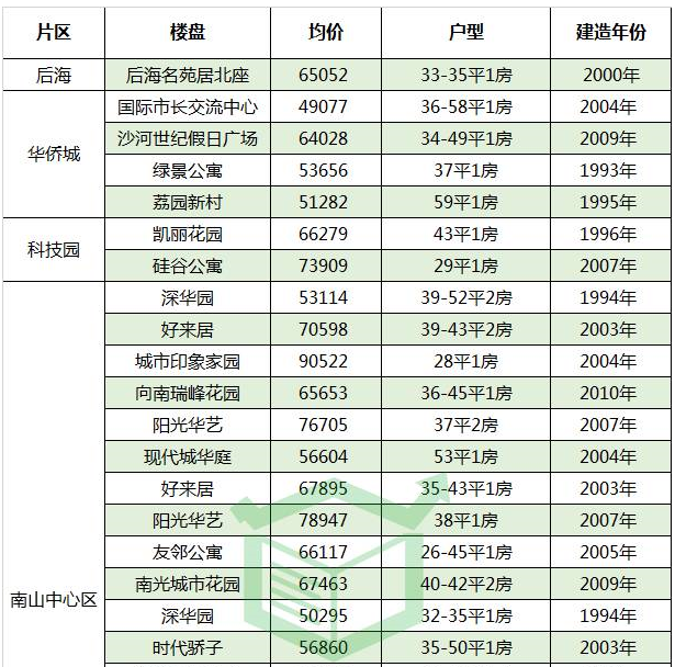 楼校长特意整理了一下深圳各区60平以下的小户型,均价在3.8-6.1万/平之间。关内关外新的旧的都有,周边基本都有地铁,各路女侠们可以慢慢挑了。