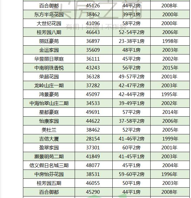 其中也不乏3字头的楼盘,但基本上都是90年代的老房子。而一些楼龄比较新且价格低的,如华商时代公寓,其实是不限购不限贷的商务公寓,首付需要5成。