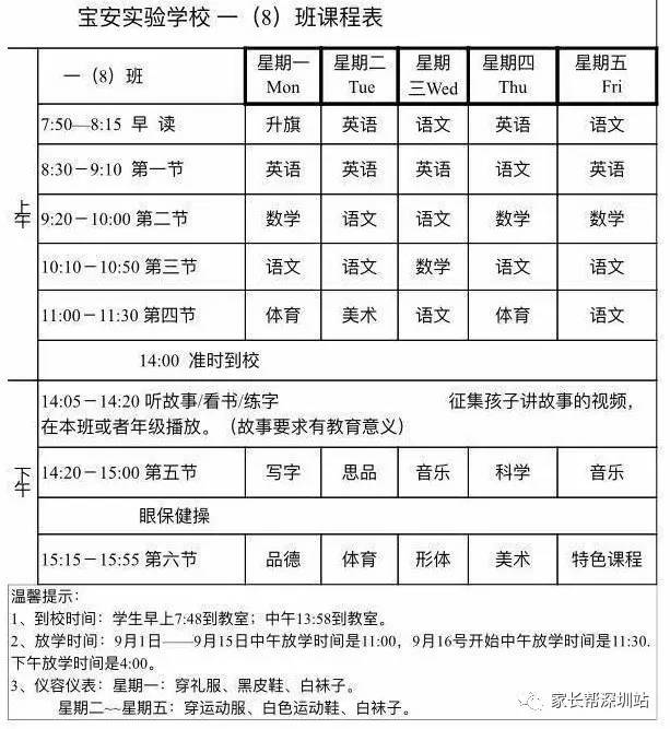 开学啦,你们学校课程安排表肯定都下来了吧!排课紧张吗?你们一周又有几节英语课呢?幼升小君在论坛进行了发帖征集,今天就带大家一起看看深圳各小学一年级的课表!