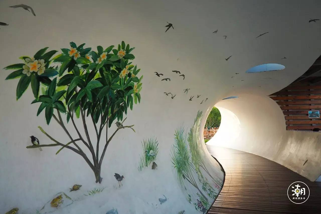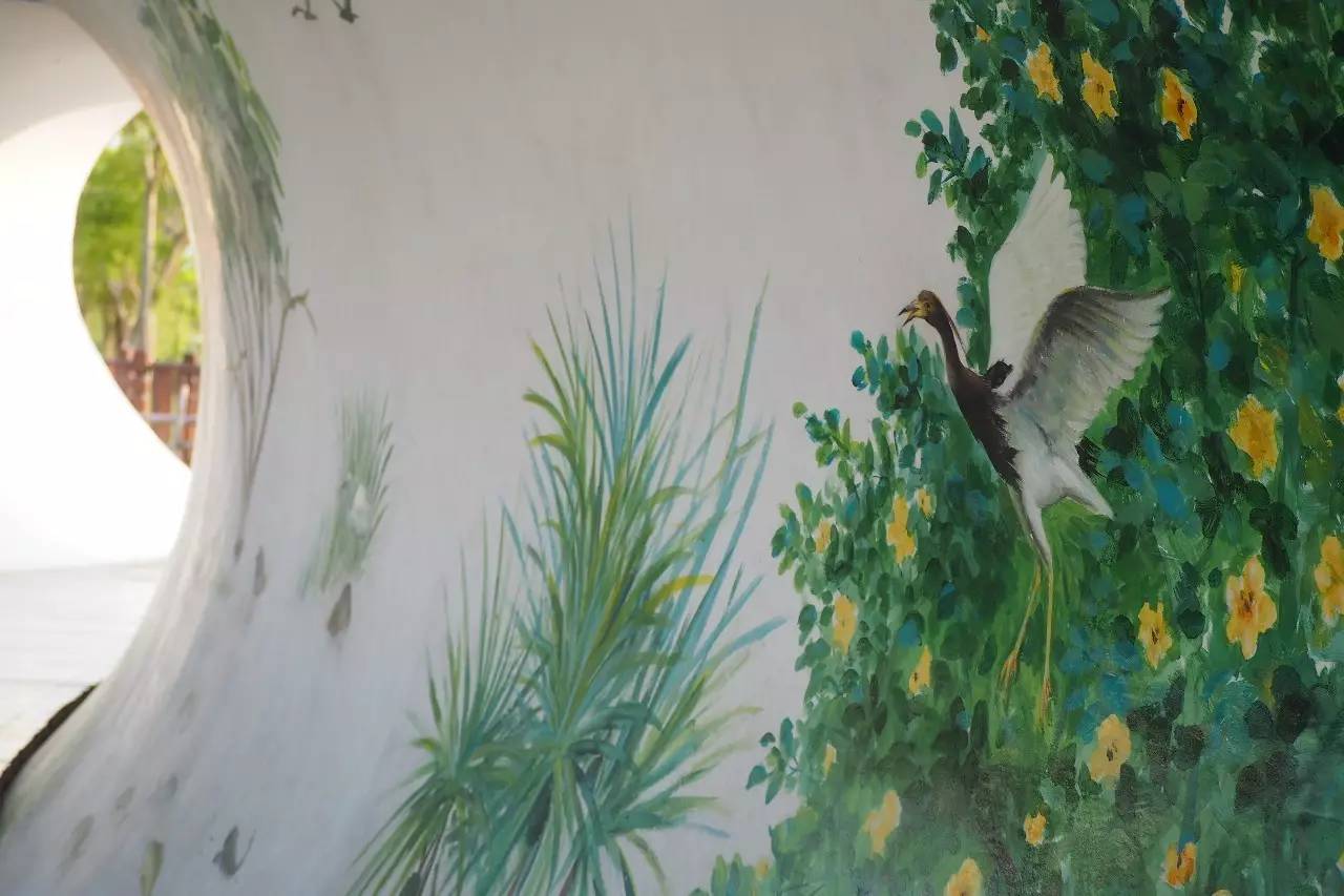 一边墙面是栩栩如生的红树林生态墙绘