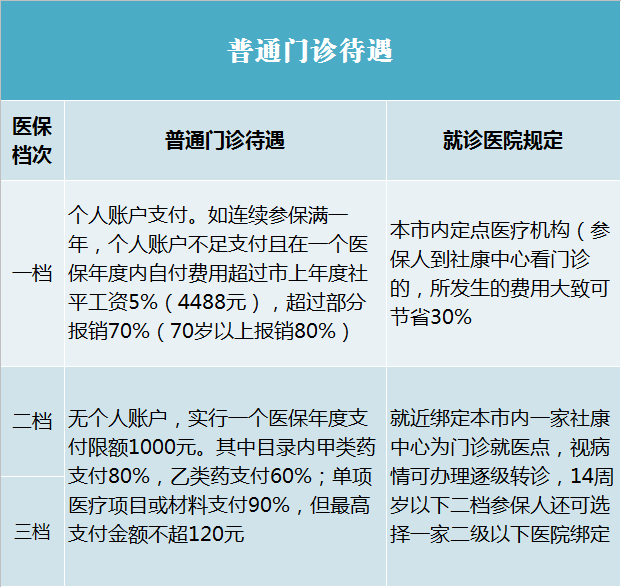普通门诊及住院看病时,根据参保人的医保档次不同,支付和报销标准也有所不同。