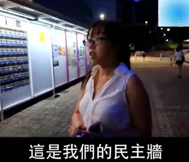 女生也马上以英语回怼:“对对,如果你们在讨论民主,你们可以贴上去,我可以撕下来。”