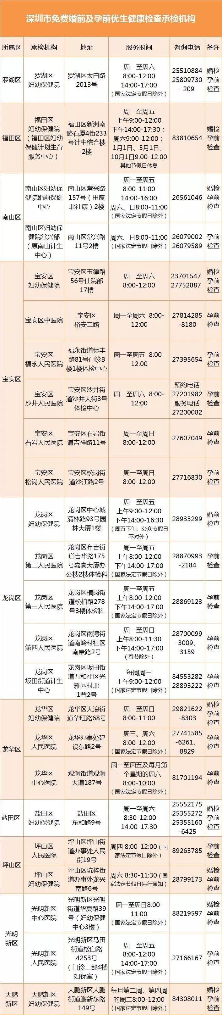 2012年12月,深圳出台新办法,将免费婚检和免费孕前优生健康检查结合起来,一共有25项。