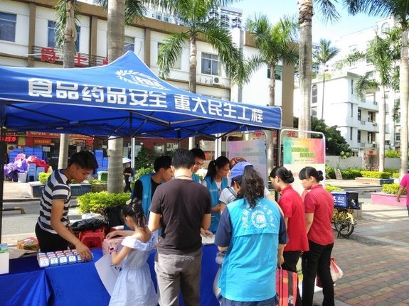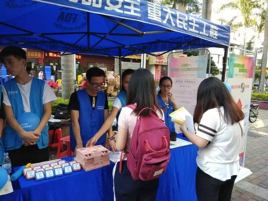 深圳市食品药品监督管理局和深圳市商品质量促进会联合南山区粤海街道食药安办以及粤桂社区工作站举行了“五进”专题之食品安全宣传进食街活动。