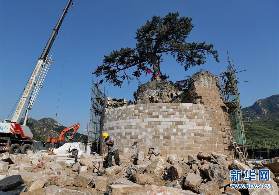 位于河北省秦皇岛市驻操营镇九门口村的长城附属建筑点将台保护修缮工程近日竣工。据了解,该点将台高约20米,占地200多平方米,由大小两个墩台组成。图为修缮完工的长城点将台。
