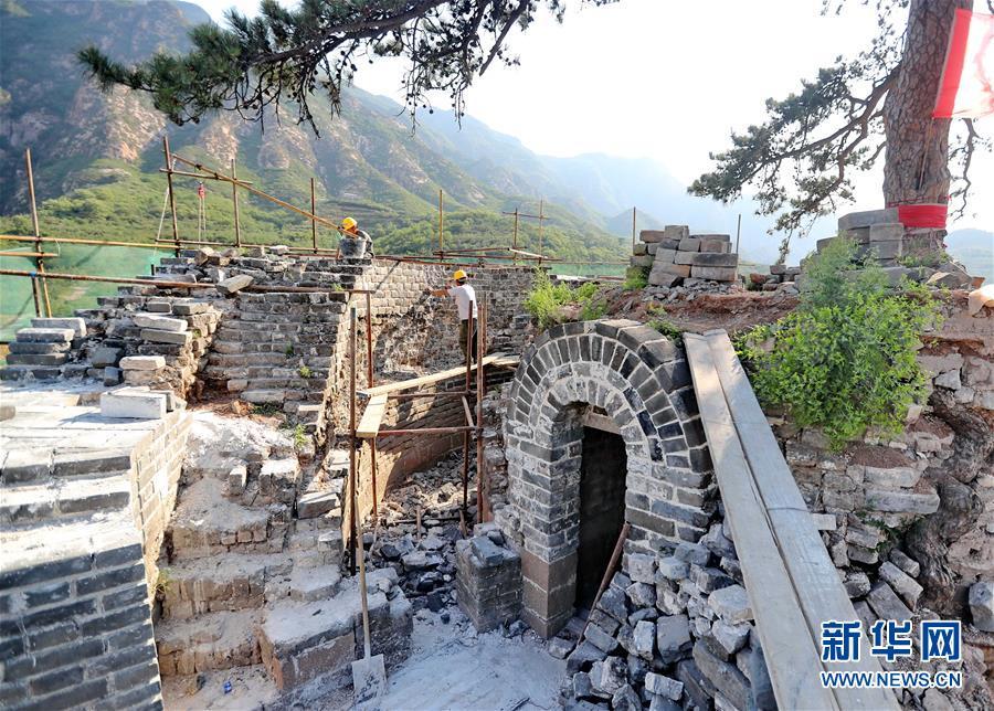 为修复这座点将台,国家文物局拨付321万元人民币,按照明朝时的建筑形制,采用糯米砂浆、铆钉、石块等材料修缮,对塌陷部分原位补砌,并适当增加拉结等加固措施,修旧如旧。图为9月10日,游客在修缮完工的长城点将台游览。
