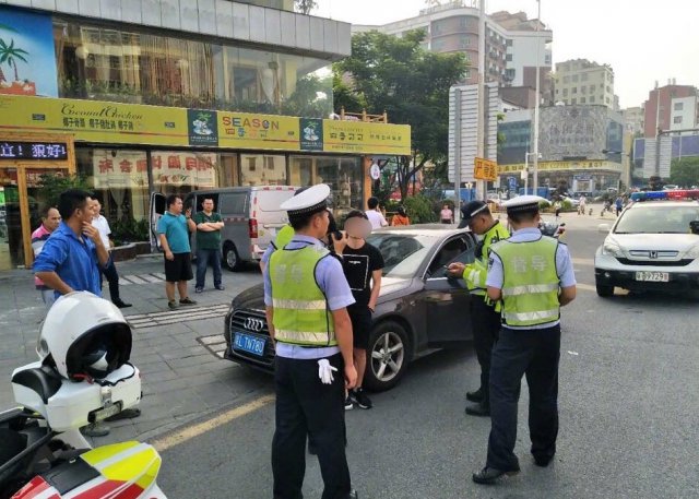 9月12日早高峰时段,深圳交警龙岗大队坂田铁骑巡逻至坂田路口时,发现一惠州牌小车停在路口绿灯后也不动。