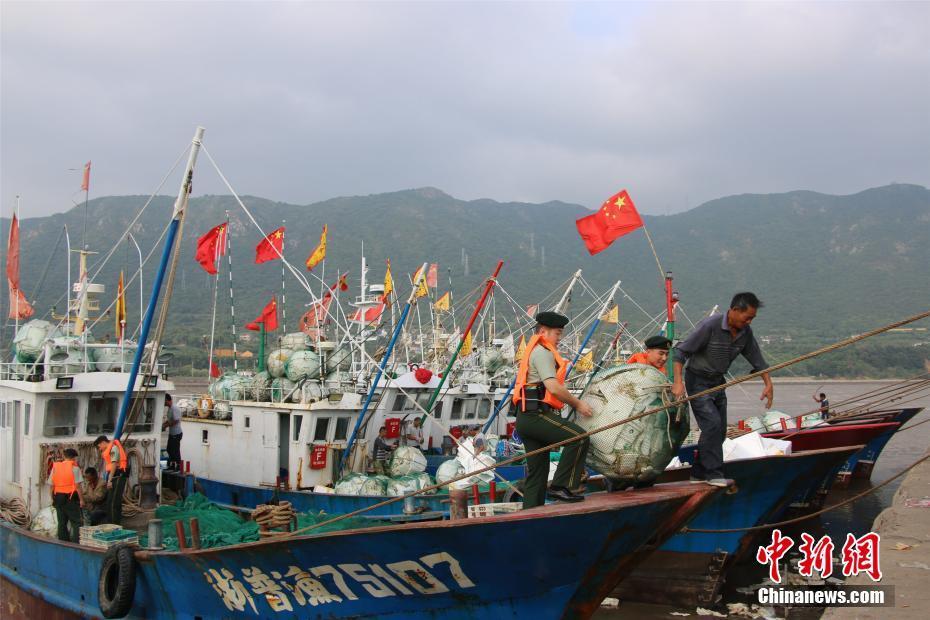 9月13日,边防官兵帮助渔民运送出海物资。在历时三个半月后,史上最严也是维持时间最长的伏季休渔期即将结束,浙江舟山边防官兵正式启动“护航开渔”,与渔民一起“忙”起来。中新社记者邹训永 摄