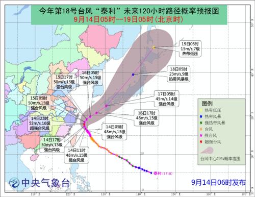 中央气象台发台风橙色预警:“泰利”最大风力将达15级