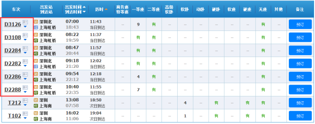 深圳每天有6趟动车直达上海,很方便 !