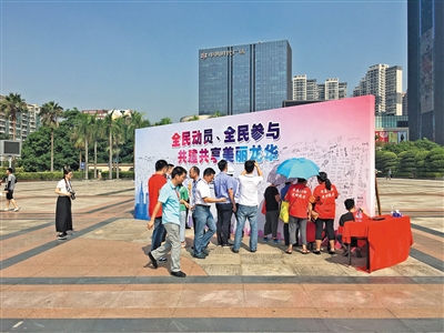 9、九是全民参与市容环境整治行动。充分利用各类网络平台加强宣传,及时发布工作动态,引导市民参与“龙华清洁日”等市容环境整治提升行动,营造共同参与、爱护家园的良好氛围。