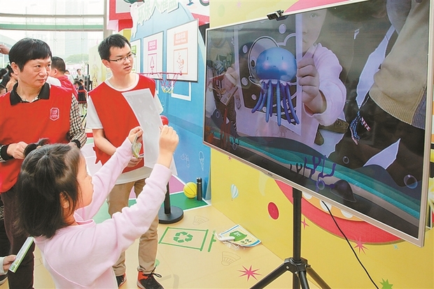 在不久前在深圳市少年宫举行的“2017青少年环保节”上,主办方为孩子们准备了丰富多彩互动游戏、环保演出、绘画、展览、演讲等活动。据主办方之一的市人居委工作人员介绍,此次活动展现了深圳青少年热爱环保,参与环保的良好形象,也有助提升青少年环境素养和环境行为水平、激发广大市民建设生态深圳的热情。