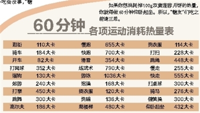 如果“糖友”贪吃月饼,不小心摄入过多热量,需要通过运动消耗热量。可参考运动降糖表:
