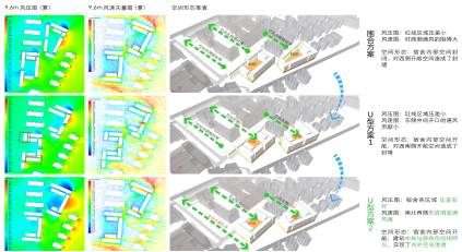 本案充分考虑场地气候环境,采用底层架空、立面开口、遮阳构件等被动式设计手法,经采光、通风模拟和日照分析等反复验证,得到布局最优解;